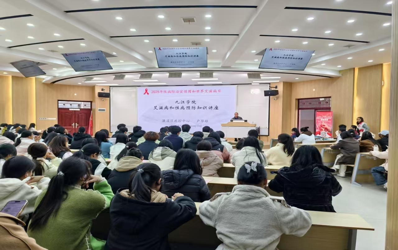 在第38个“世界艾滋病日”来临之际,为增进在校大学生对艾滋病的科学认识,提升防艾抗艾能力,营造健康无“艾”、友善和谐的校园环境,11月26日下午,校医院联合濂溪区疾病预防控制中心、濂溪区人民医院,在学校竞知楼举办防艾知识讲座,在三食堂广场开展艾滋病防治主题现场宣传活动。本次活动以“社会共治,守正创新,终结艾滋”为主题,吸引了大量师生的踊跃参与。